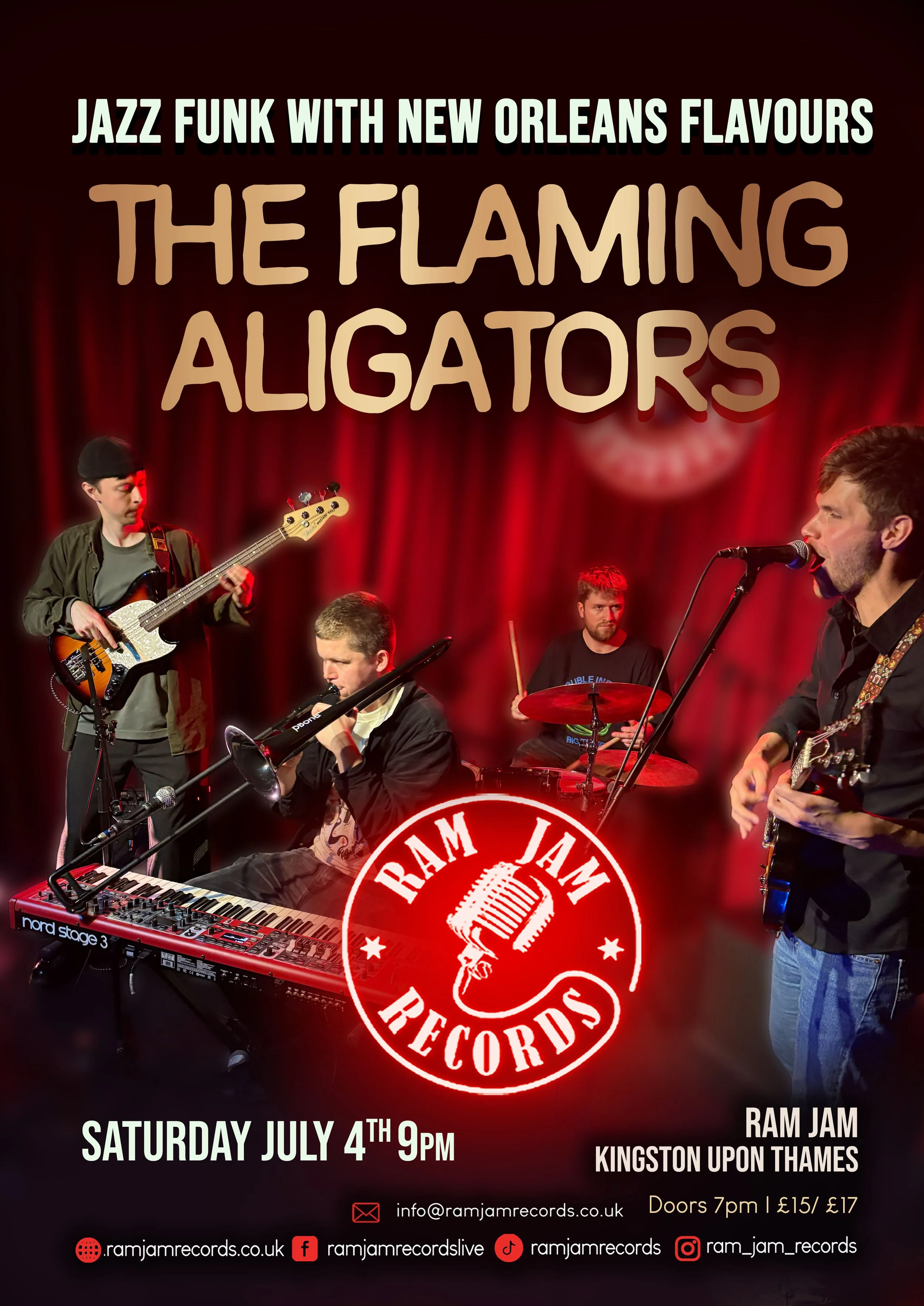 Formed in 2020 The Flaming Aligators have performed at venues across London and further out including Upstairs @ Ronnies, Ain’t Nothin But’, Coolham Live Music Club and many more. Individually the band members work with the Banger Factory, Dino Baptiste, Dana Gillespie and more.
