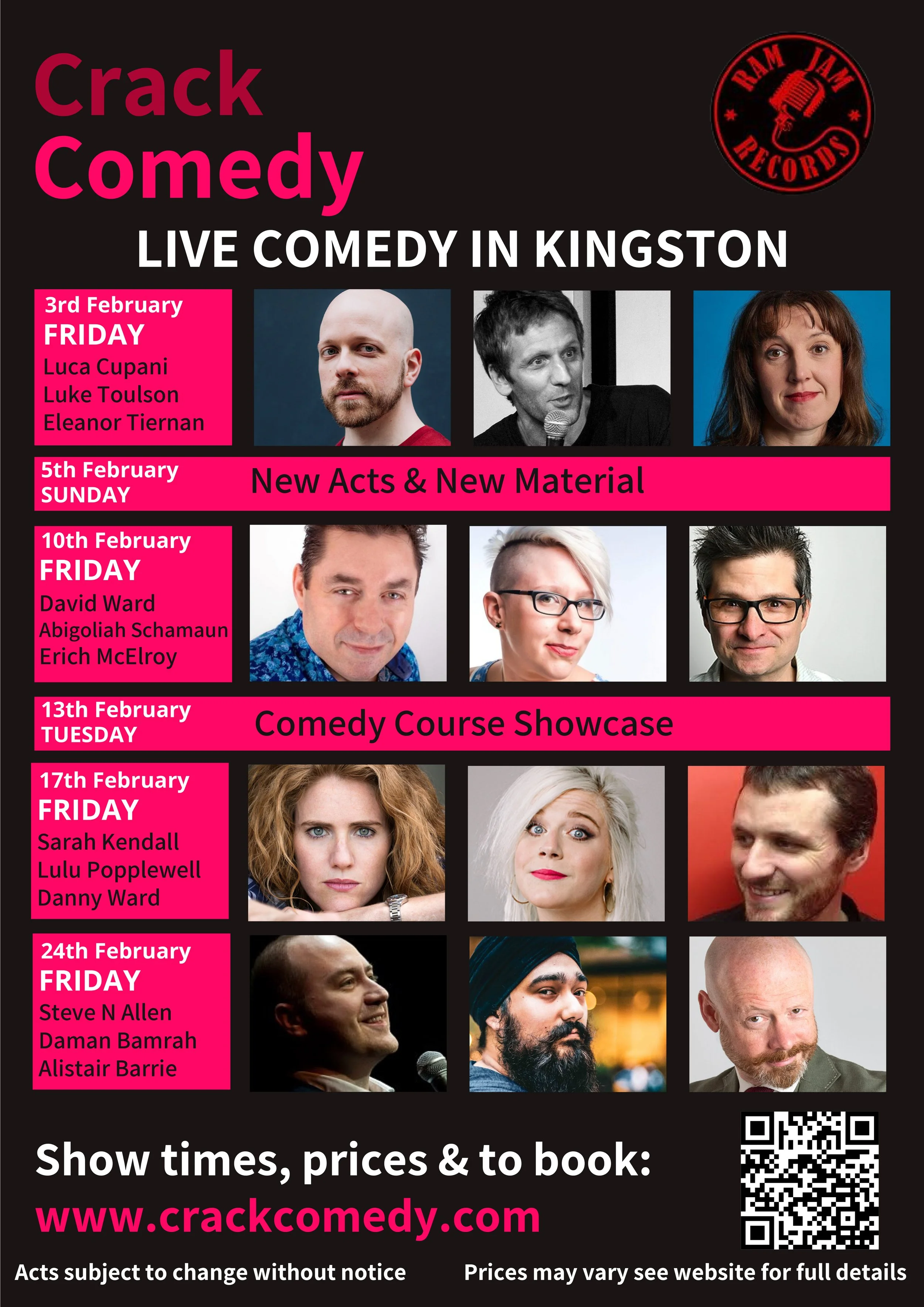 Crack Comedy specializes in bringing the circuit’s best acts to intimate venues and Ram Jam Records has welcomed some huge names and also many rising stars.