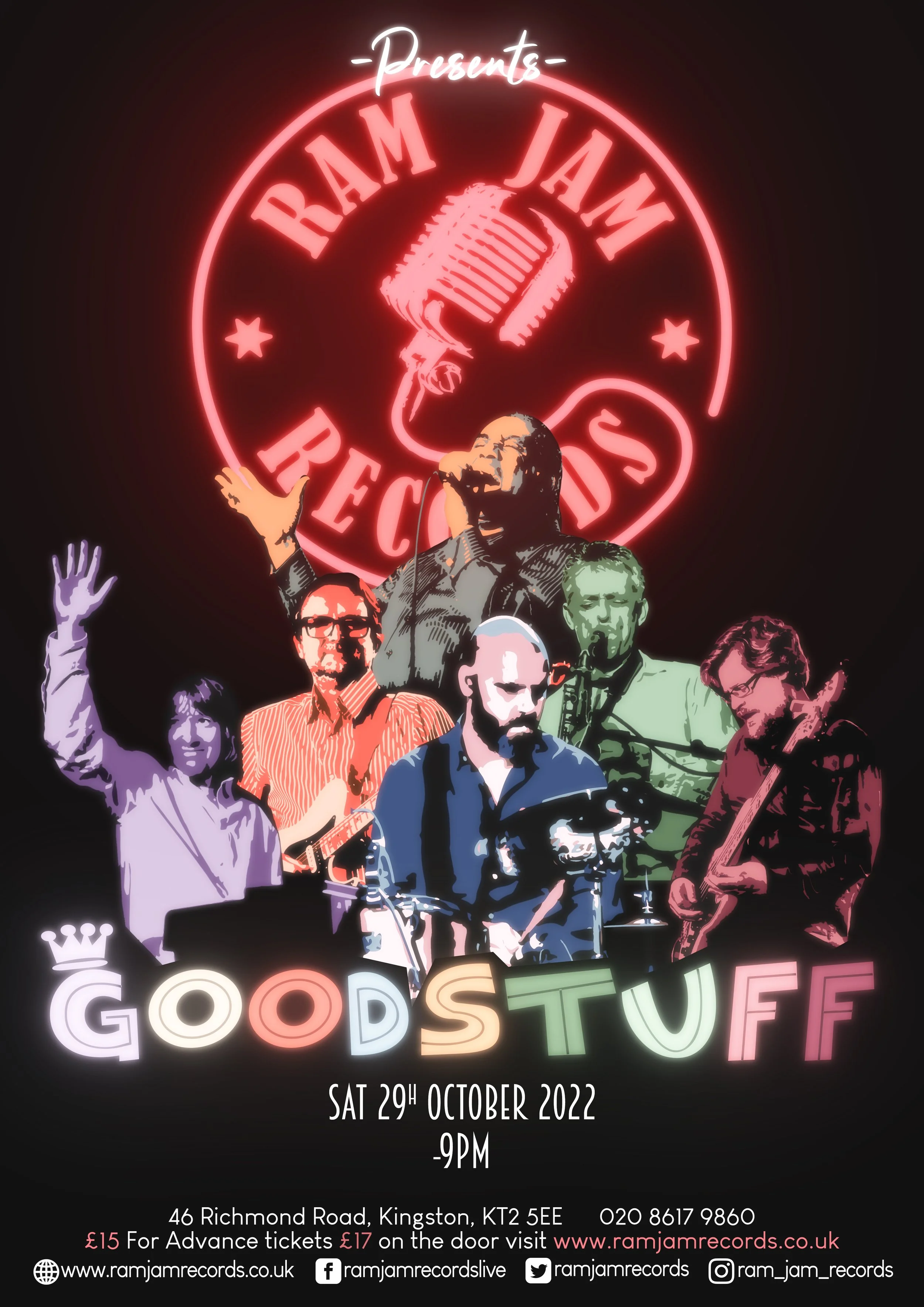 When 6 long-time friends & music industry professionals decided to form GoodStuff the idea was simple – to go back to their musical roots and play the Funk, Soul & Jazz grooves that they remember listening to (& dancing to!) in the 1970s …Fronted by dynamic vocalist Vic Bynoe, the band are all world-class musicians who between them have worked with artists as diverse as Eric Clapton, James Brown, Paul Young, The Drifters, Rick Astley, Roger Daltrey, Dexys Midnight Runners, Aztec Camera & Lemar - as well as Film/TV work including Sliding Doors, Mr Bean movies, The Frank Skinner Show and The Voice.
