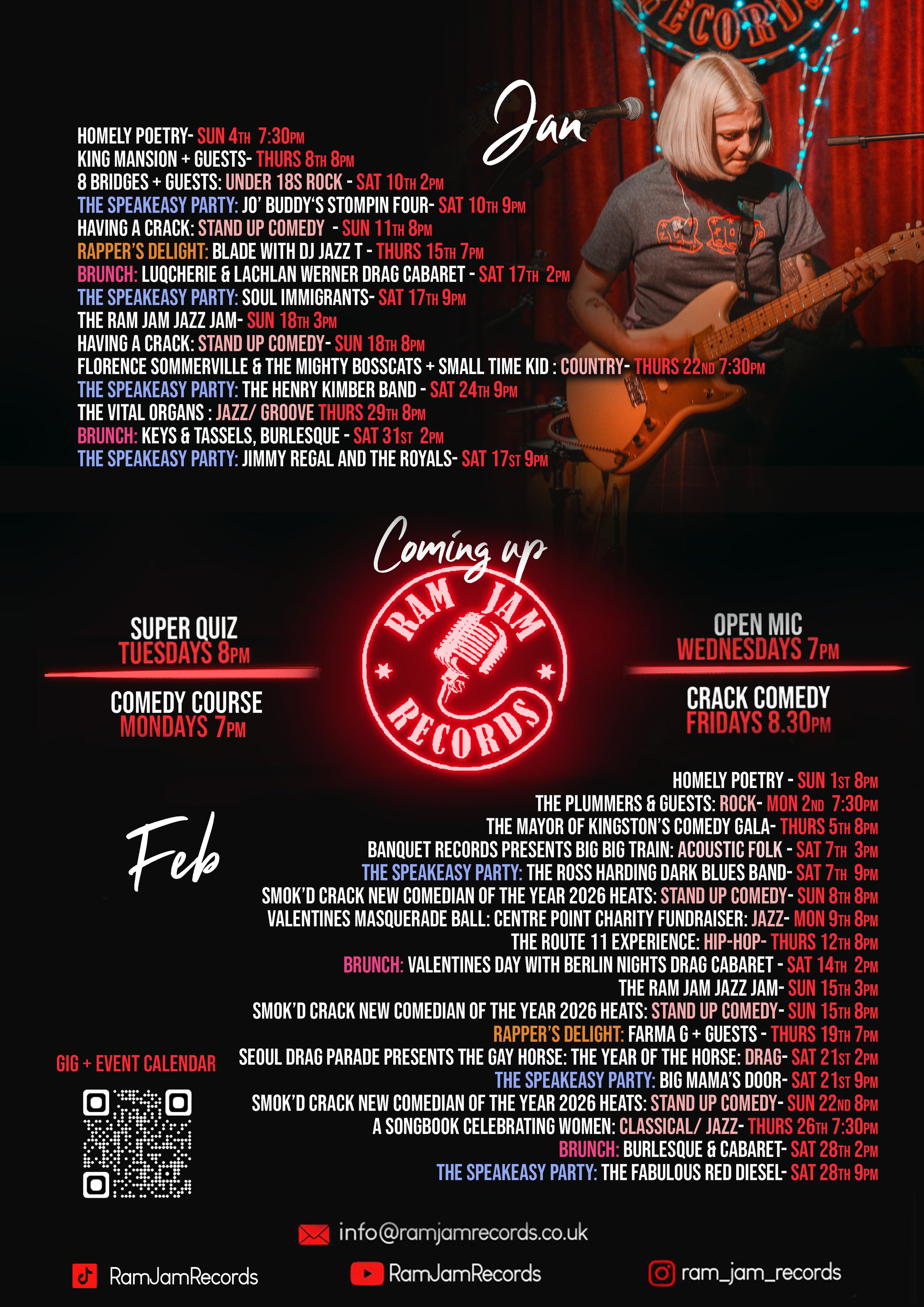 Join us at Ram Jam Records for live music & More in our cosy speakeasy setting